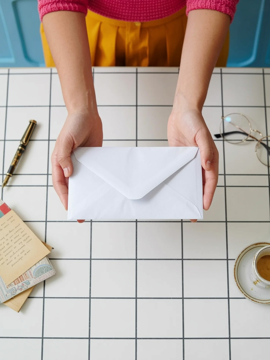 someone opens an envelope. Their fingertips brush against the paper - they feel the weight, the texture, the colors.